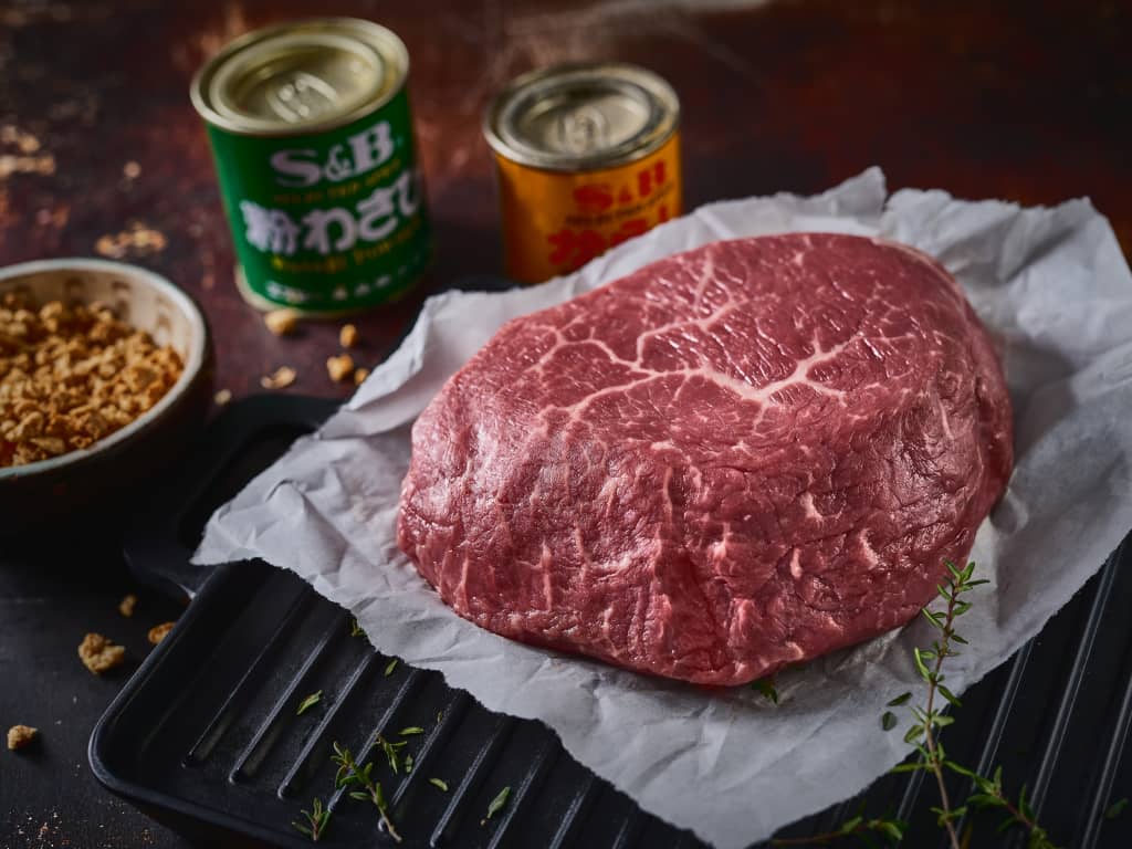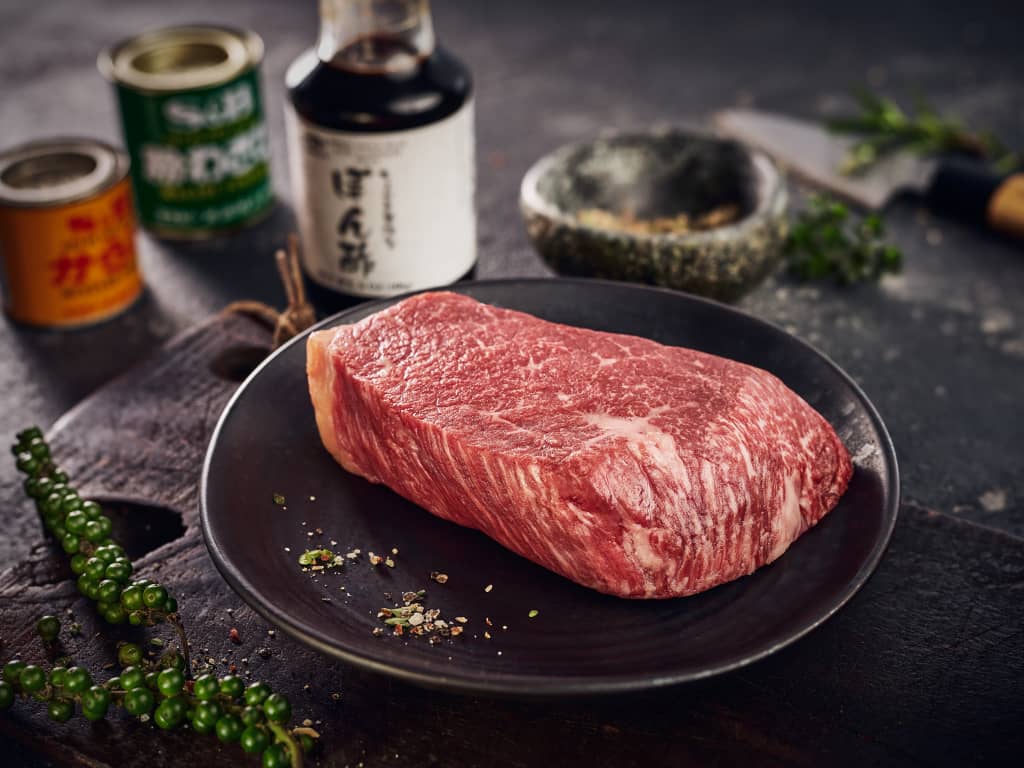 Das Roastbeef oder Rumpsteak wird aus dem Mittelteil des Rückens geschnitten. Charakteristisch für diesen Zuschnitt ist ein gleichmäßiger Fettrand am Wagyu Steak. Es ist feinfaserig und sehr zart mit einem buttrigen Schmelz.