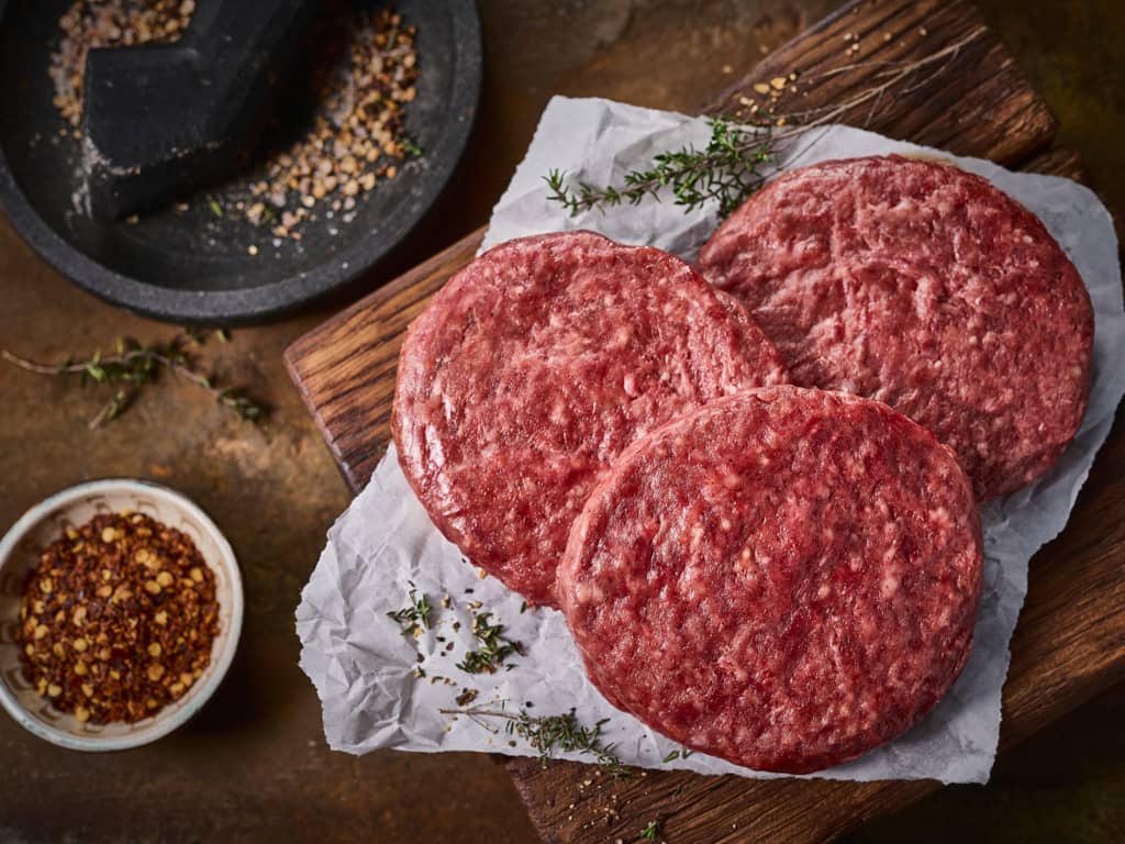 Die Patties bitte erst drehen, wenn Sie sie problemlos wenden können. Wenn sie noch anhaften, ist es noch zu früh.